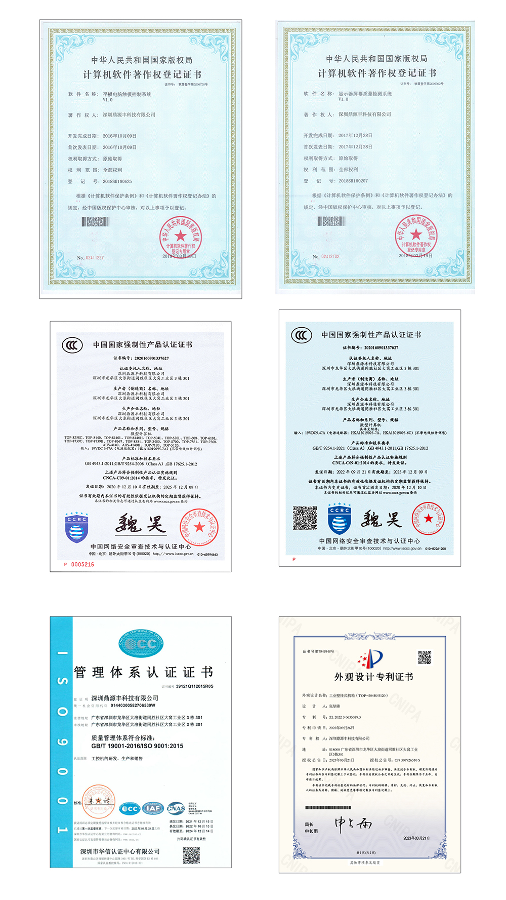 鼎源豐陸續通過了ISO9001 質量體系、在嵌入式工業電腦產品(嵌入式工控機,工業平板電腦,嵌入式主板系列等)相繼做了CCC/CE  等體系認證,優良的品質,優質的服務,良好的信譽,使得公司在行內業界享有廣泛的聲譽,并深受客戶的青睞!